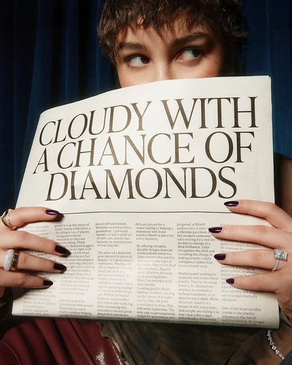 Zales was, self-admittedly, in need of an update. For decades the brand seamed stuck in the past using traditional messaging that urged men to buy jewelry for their female partners. Meanwhile competitive brands were eating our lunch appealing to self-purchasers. But Zales offers something they don't: fine jewelry. We wanted to embrace our roots as a democratic brand and invite women AND men to play with what was previously deemed too precious.